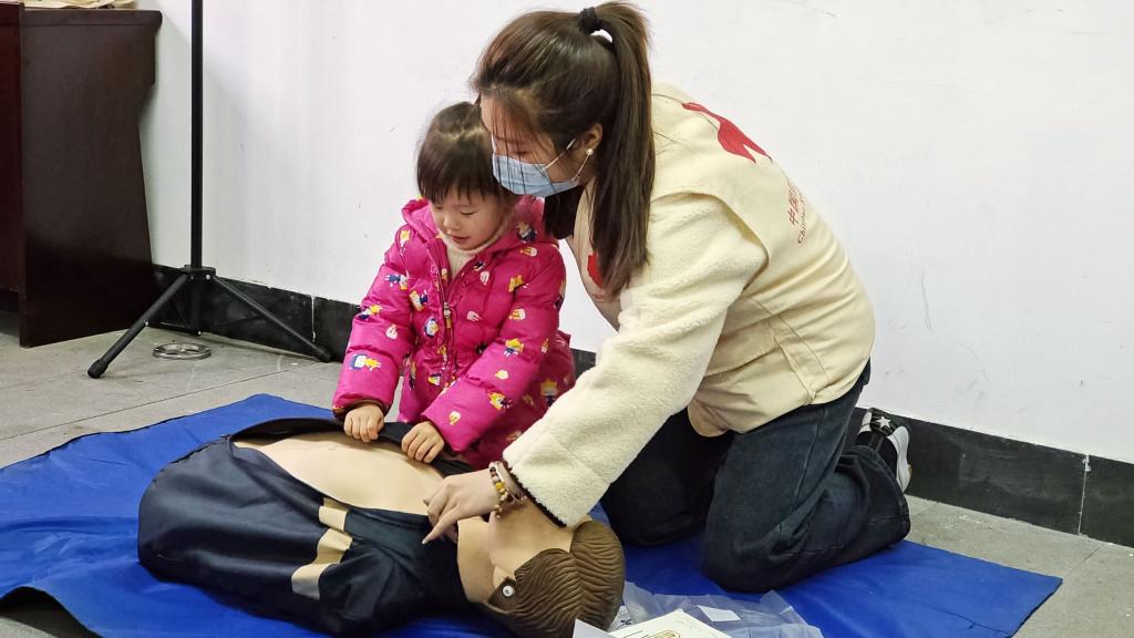 實(shí)踐隊(duì)的隊(duì)員們運(yùn)用醫(yī)學(xué)專業(yè)知識(shí),手把手地指導(dǎo)小學(xué)生進(jìn)行海姆立克、心肺復(fù)蘇術(shù)等急救技能訓(xùn)練,隊(duì)員們耐心地講解每一個(gè)步驟,確保小學(xué)生能夠準(zhǔn)確掌握技巧,同時(shí)向他們傳授一些日常急救知識(shí),讓他們了解如何在緊急情況下保護(hù)自己和他人的安全。在實(shí)踐練習(xí)中,小學(xué)生們認(rèn)真學(xué)習(xí)每一個(gè)動(dòng)作,努力掌握操作技巧,表現(xiàn)出極大的熱情和積極性。