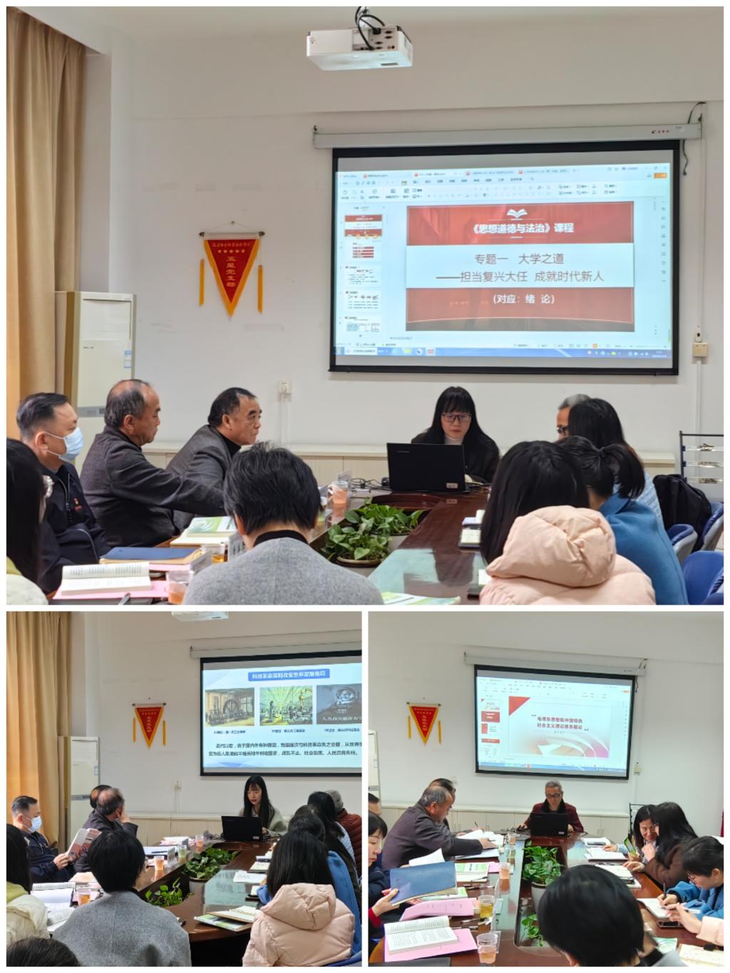 備課會(huì)上,馬克思主義學(xué)院院長(zhǎng)熊美蘭老師展示“思想道德與法治”課程“專題一:大學(xué)之道——擔(dān)當(dāng)復(fù)興大任 成就時(shí)代新人”集備內(nèi)容,從“概述本課程教學(xué)”“簡(jiǎn)介專題一”“學(xué)情分析”“教學(xué)實(shí)施展示”四個(gè)方面對(duì)教學(xué)設(shè)計(jì)和教學(xué)資源等作交流分享。胡濟(jì)林老師圍繞“課程中的定位”“學(xué)情分析”“教學(xué)構(gòu)思、教學(xué)內(nèi)容設(shè)計(jì)”“如何攻克教學(xué)重點(diǎn)難點(diǎn)問題”四個(gè)方面對(duì)“毛澤東思想和中國(guó)特色社會(huì)主義理論體系概論”課程“導(dǎo)論:馬克思主義中國(guó)化時(shí)代化的歷史進(jìn)程與理論成果”教學(xué)內(nèi)容進(jìn)行備課。張晨琳老師針對(duì)“形勢(shì)與政策”課程“第三講:走好新時(shí)代科技自立自強(qiáng)之路”,從“戰(zhàn)略博弈”“乘風(fēng)破浪”“勇立潮頭”“凝‘青’聚力”四個(gè)部分進(jìn)行集備展示。與會(huì)教師代表針對(duì)概念拓展、教學(xué)重難點(diǎn)分析、課堂互動(dòng)的實(shí)現(xiàn)方式等進(jìn)行熱烈的研討交流。