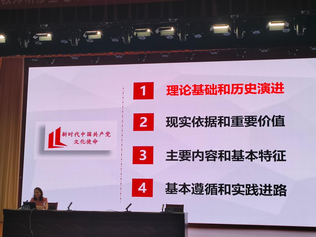 “文化認(rèn)同是最深層次的認(rèn)同,是民族團(tuán)結(jié)之根、民族和睦之魂。”在新疆大地上,中華文化數(shù)千年延續(xù),化在悠悠古絲綢之路上精魂永存的烽燧戍堡之中,留在飽經(jīng)風(fēng)霜卻歷久彌新的古城之間,滲入生活在新疆土地上各民族的思想言行之中。開(kāi)班第一課上,新疆師范大學(xué)馬克思主義學(xué)院副院長(zhǎng)羅志佳教授以“新時(shí)代中國(guó)共產(chǎn)黨文化使命”為題,通過(guò)講述新疆紅色故事、朗誦新疆革命詩(shī)歌、演唱新疆經(jīng)典民歌等多種方式,向參訓(xùn)教師生動(dòng)闡釋了新時(shí)代中國(guó)共產(chǎn)黨文化使命的“理論基礎(chǔ)和歷史演進(jìn)”“現(xiàn)實(shí)依據(jù)和重要價(jià)值”“主要內(nèi)容和基本特征”“基本遵循和實(shí)踐路徑”四個(gè)方面內(nèi)容。羅志佳教授將新疆各民族風(fēng)土人情和文化底蘊(yùn)有機(jī)融入中華文化的發(fā)展脈絡(luò)之中,于“文化潤(rùn)疆”中,讓參訓(xùn)教師深刻感悟到各民族廣泛交往交流交融、團(tuán)結(jié)奮進(jìn)的新疆實(shí)踐,積累了宣傳中華民族共同體意識(shí)的生動(dòng)素材。