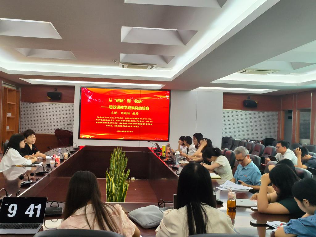 為貫徹落實(shí)習(xí)近平總書記關(guān)于思政課建設(shè)的重要論述,持續(xù)打好提高思政課質(zhì)量和水平的攻堅(jiān)戰(zhàn),進(jìn)一步提煉我校近年來(lái)思政課取得的豐碩成果,塑造教育品牌,激發(fā)全體思政課教師投身教育教學(xué)研究熱情,強(qiáng)化思政課教學(xué)成果獎(jiǎng)培育,2024年9月19日,我校邀請(qǐng)福建農(nóng)林大學(xué)劉新玲教授在厚德樓四樓會(huì)議室作題為《從“耕耘”到“收獲”——思政課教學(xué)成果獎(jiǎng)的培育》專題講座。講座由馬克思主義學(xué)院院長(zhǎng)熊美蘭主持,全體專兼課思政教師參加。