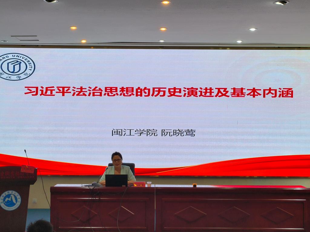 習(xí)近平法治思想是習(xí)近平新時代中國特色社會主義思想的重要組成部分,為持續(xù)推動學(xué)習(xí)貫徹習(xí)近平法治思想走深走實(shí),2024年9月19日,馬克思主義學(xué)院邀請閩江學(xué)院法學(xué)院原院長阮曉鶯教授在篤行樓四樓報告廳開展《習(xí)近平法治思想的歷史演進(jìn)及基本內(nèi)涵》專題講座。講座由馬克思主義學(xué)院院長熊美蘭主持,馬克思主義學(xué)院全體專兼課教師、學(xué)生代表參加。