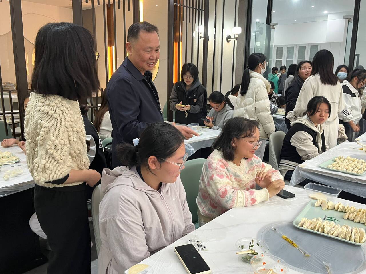 曾武祈走進學生中間,從《說文解字》中具有重要文化含義的意向性比喻——“法平如水”出發(fā),娓娓道來,幫助在場師生深化對法的基本理解。在與同學們親切交談的過程中,他指出,餃子作為中華民族飲食文化的瑰寶,蘊含著深厚的歷史底蘊與民族情感,是文化傳承的生動載體。此次活動,師生共話家常,同包餃餌,不僅增進了情誼,更在無形中延續(xù)了中華優(yōu)秀傳統(tǒng)文化血脈。近年來,我校深入探索“一站式”學生社區(qū)建設新方法新路徑,不斷提升學生社區(qū)精準育人效能。青年學子應以此次活動為契機,學深悟透“兩個結合”,更好肩負新時代的憲法宣傳使命,實現中華優(yōu)秀傳統(tǒng)文化與法治理念深度融合和實踐。