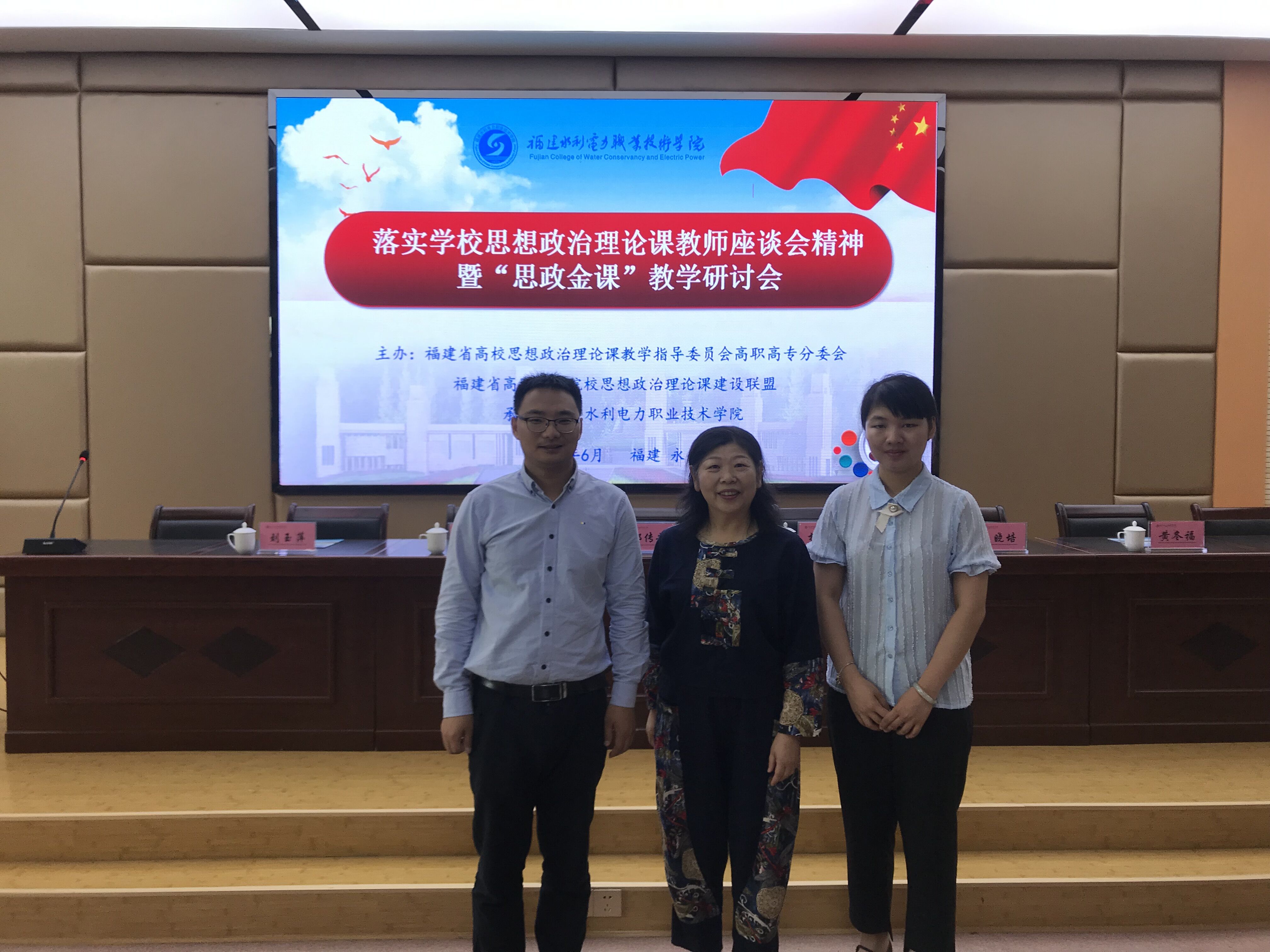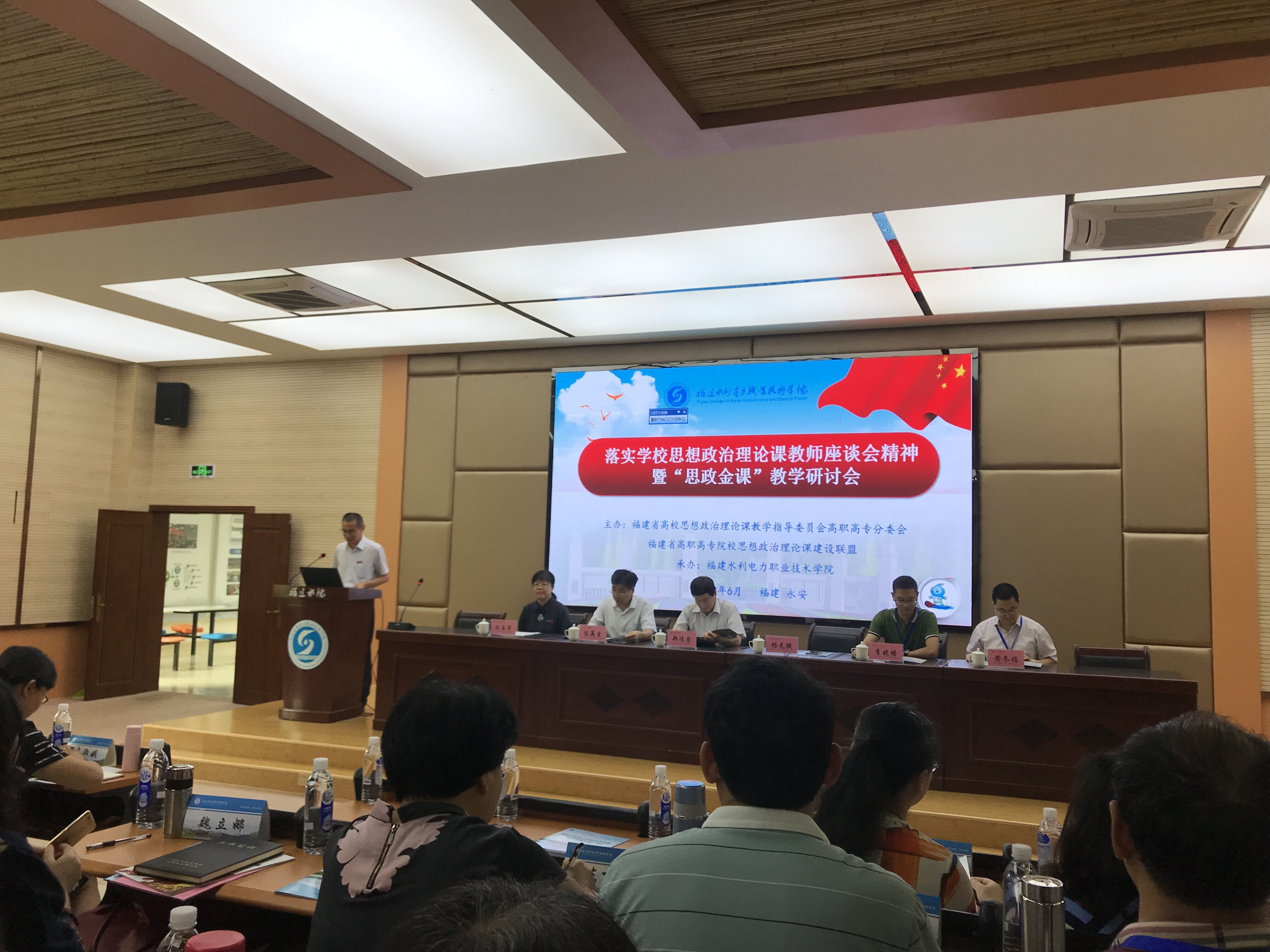 2019年6月14日至16日,落實(shí)學(xué)校思想政治課教師座談會(huì)精神暨“思政金課”教學(xué)研討會(huì)在福建永安召開。此次會(huì)議由福建省高校思想政治理論課教學(xué)指導(dǎo)委員會(huì)高職分委會(huì)——福建省高職高專院校思想政治理論課建設(shè)聯(lián)盟主辦,福建水利電力職業(yè)技術(shù)學(xué)院馬克思主義學(xué)院承辦,共有來自省內(nèi)外高校近100名思想政治教育教學(xué)專家及一線教師參加會(huì)議。我院魏立娜、邱萍和張崇飛3位教師參加了此次研討會(huì)交流學(xué)習(xí)。