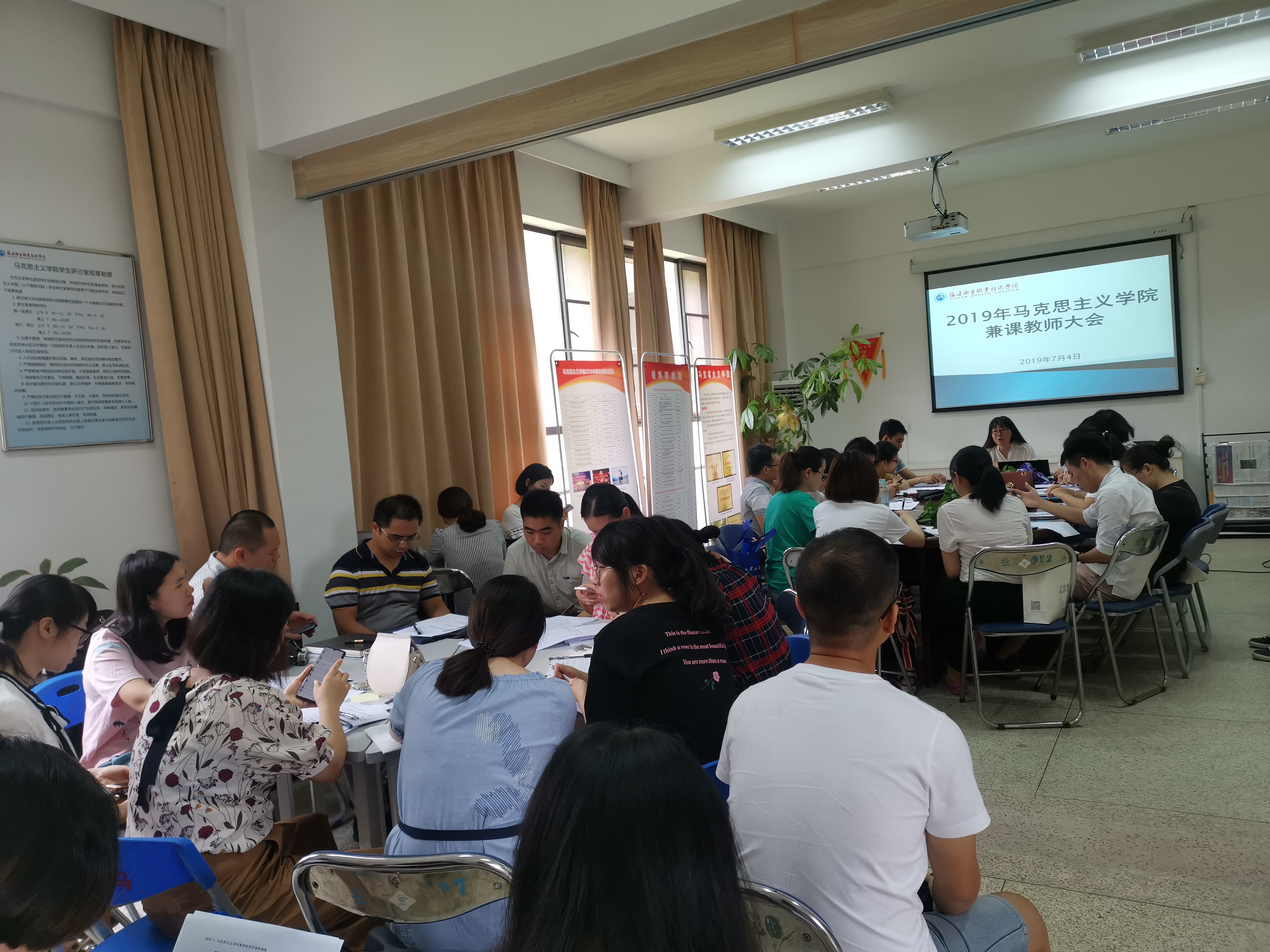 為全面提升教師教學質量,貫徹落實習近平總書記在學校思政課教師座談會重要講話精神,用好課堂教學這個主渠道,使馬克思主義學院(以下簡稱“馬院”)教學工作逐步走向制度化、規(guī)范化和科學化的軌道,更上一個臺階。2019年7月4號上午在行政樓107召開馬院全體兼課教師大會,馬院院長熊美蘭主持會議。