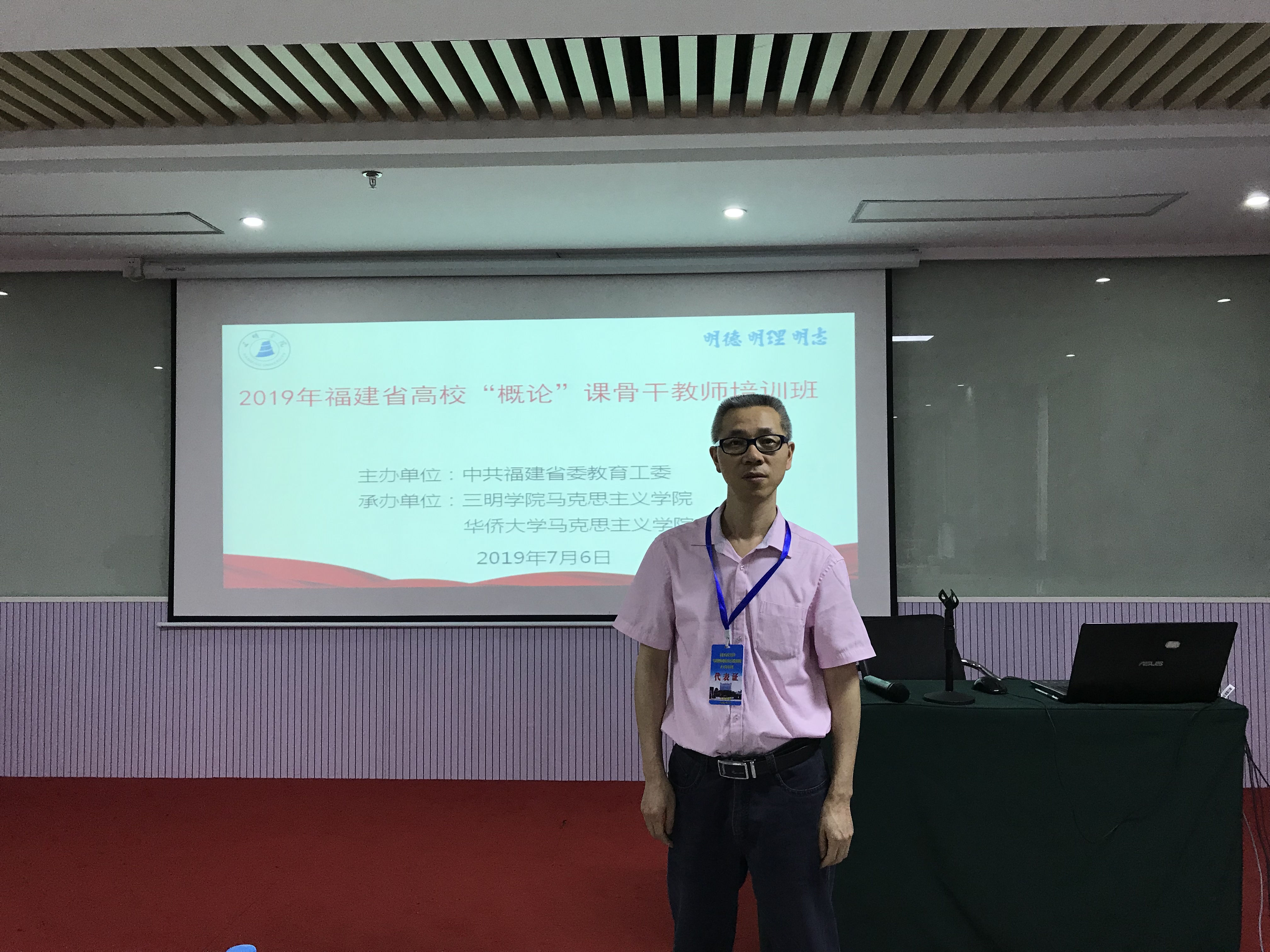 由福建省高校思想政治理論課教學(xué)指導(dǎo)委員會主辦、三明學(xué)院、華僑大學(xué)承辦的福建省高校2019年“毛澤東思想和中國特色社會主義理論體系概論”骨干教師培訓(xùn)班于2019年7月5日至7月7日在福建三明舉行,福建省88所高校的106位“概論”課骨干教師參加,馬克思主義學(xué)院概論教研室主任胡濟(jì)林副教授參加此次培訓(xùn)。