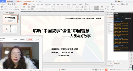 “陽春三月煙花如海,風(fēng)月無邊吟贊春秋?!卑殡S著三月份的到來,習(xí)近平新時代中國特色社會主義思想讀書社星星隊于3月3日在釘釘直播平臺,進(jìn)行了第三專題—人民友好故事的學(xué)習(xí)。這次的專題學(xué)習(xí)與前兩次不同,由星星隊員們聽楊盈老師為我們講解,變成了由同學(xué)們來做“老師”進(jìn)行講解。