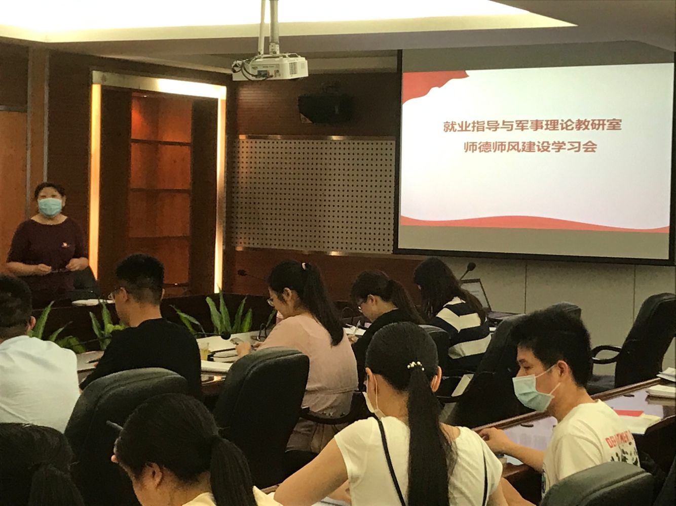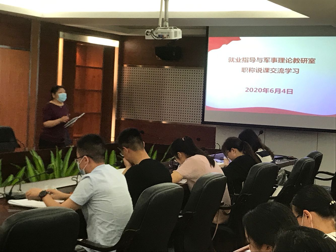 為了全面加強(qiáng)師德師風(fēng)建設(shè)工作,提高教師的整體素質(zhì),建設(shè)一支師德高尚、業(yè)務(wù)精良的教師隊(duì)伍。就業(yè)指導(dǎo)和軍事理論教研室在行政樓四樓會(huì)議室組織開(kāi)展師德師風(fēng)建設(shè)和職稱(chēng)說(shuō)課交流教研活動(dòng),全體教師參加,會(huì)議由教研室魏立娜主任主持。