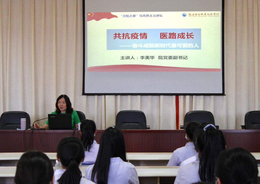 2020年6月11日、18日,福建衛(wèi)生職業(yè)技術(shù)學(xué)院黨委書記曾武祈、黨委副書記李美華、副校長(zhǎng)黃銘珊、副校長(zhǎng)鄭翠紅等校領(lǐng)導(dǎo)以“共抗疫情,醫(yī)路成長(zhǎng)——奮斗成就新時(shí)代”為主題紛紛走上講臺(tái),分別為陸續(xù)返校的大二學(xué)生,精彩奉獻(xiàn)返校思政戰(zhàn)“疫”課,將新冠肺炎疫情防控生動(dòng)感人的實(shí)踐轉(zhuǎn)化為鮮活有力的思政育人元素,引導(dǎo)衛(wèi)院學(xué)子以青春奮斗擔(dān)當(dāng)精神,堅(jiān)定理想信念,站穩(wěn)人民立場(chǎng),練就過(guò)硬本領(lǐng),投身強(qiáng)國(guó)偉業(yè)。護(hù)理系、藥學(xué)系、臨床醫(yī)學(xué)系、健康管理系等返校學(xué)生,黨政領(lǐng)導(dǎo)干部、思政課教師和輔導(dǎo)員也齊聚課堂聆聽(tīng)。