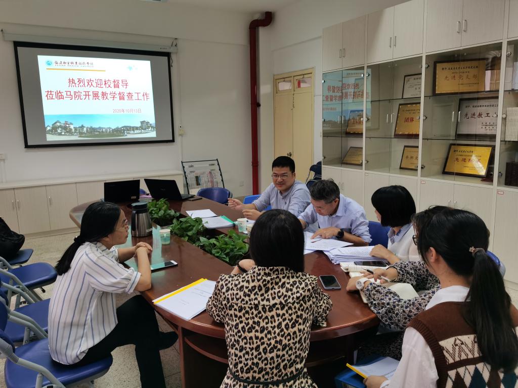 為了維護(hù)教學(xué)秩序,嚴(yán)格教學(xué)規(guī)范,2020年10月13日下午,學(xué)校督導(dǎo)室主任王珊珊、校督導(dǎo)歐春木老師、葉榕老師蒞臨馬克思主義學(xué)院進(jìn)行期初教學(xué)檢查,馬克思主義學(xué)院院長熊美蘭、辦公室主任楊盈及各教研室主任參加了此次檢查。
