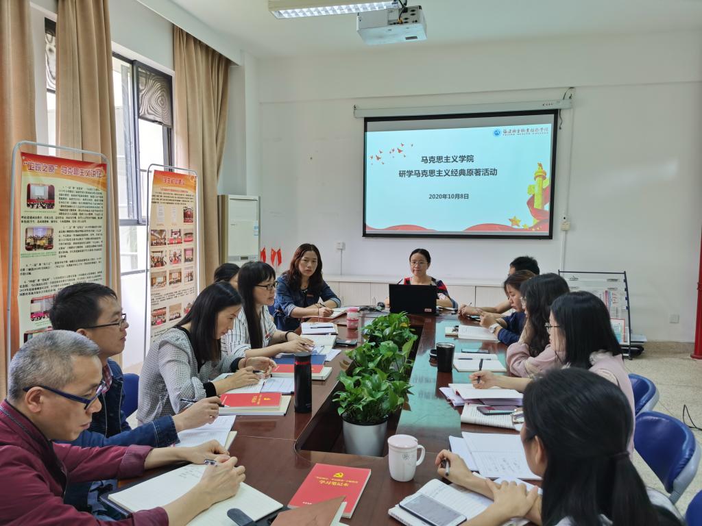 2020年10月8日上午,馬克思主義學(xué)院全體思政教師在會議室舉行了第四次馬克思主義經(jīng)典原著研學(xué)活動,此次活動由馬克思主義學(xué)院院長熊美蘭主持,龍慧老師主講。