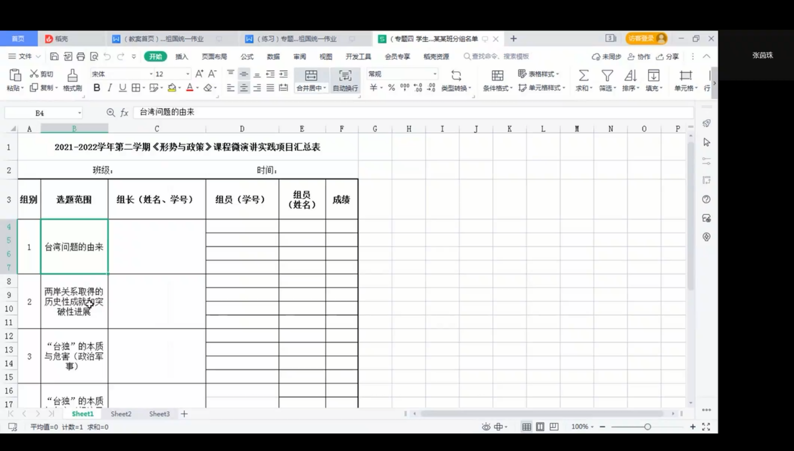 張茵珠圍繞《站在歷史正確一邊共創(chuàng)祖國統(tǒng)一偉業(yè)》這一學(xué)生主講專題,立足教學(xué)目的和學(xué)生實際,提供了“臺灣問題的由來”“兩岸關(guān)系取得的歷史性成就和突破性進(jìn)展”“臺獨(dú)的本質(zhì)與危害”等七個選題。