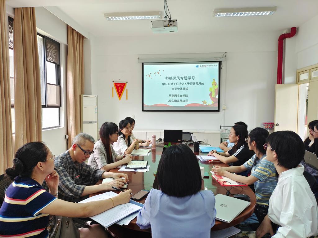 為深入學(xué)習(xí)貫徹習(xí)近平總書(shū)記關(guān)于教育的重要論述和全國(guó)職業(yè)教育大會(huì)精神,加強(qiáng)和改進(jìn)新時(shí)代師德師風(fēng)建設(shè),2022年6月16日馬克思主義學(xué)院開(kāi)展師德師風(fēng)專(zhuān)題學(xué)習(xí)。