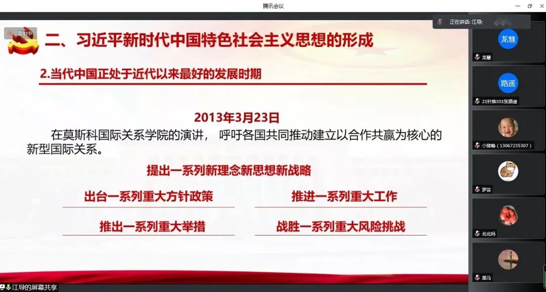 江曉暉運(yùn)用學(xué)術(shù)研究專長,圍繞習(xí)近平新時代中國特色社會主義思想的指導(dǎo)地位、形成過程、科學(xué)內(nèi)涵和核心內(nèi)容、地位貢獻(xiàn)五個方面,深入淺出地闡釋了習(xí)近平新時代中國特色社會主義思想何以成為黨和國家必須長期堅持的指導(dǎo)思想。專題講座之后,與會師生就深入學(xué)習(xí)、領(lǐng)會和貫徹習(xí)近平新時代中國特色社會主義思想以及該課程的專題化教學(xué)、集體備課等與專家開展熱烈討論。