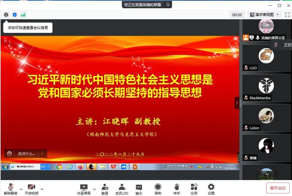 為幫助師生全面準(zhǔn)確深入領(lǐng)會習(xí)近平新時代中國特色社會主義思想,特別是黨的十九屆六中全會通過的歷史決議對習(xí)近平新時代中國特色社會主義思想的最新闡釋,2022年8月29日,我校馬克思主義學(xué)院邀請閩南師范大學(xué)馬克思主義學(xué)院副教授江曉暉作題為《習(xí)近平新時代中國特色社會主義思想是黨和國家必須長期堅持的指導(dǎo)思想》的專題講座。講座由馬克思主義學(xué)院副院長來朋珍主持,馬克思主義學(xué)院全體教師及部分學(xué)生代表參加。