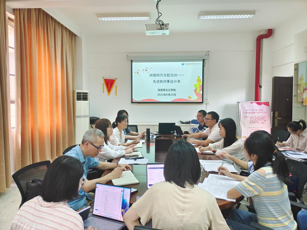 為加強師德師風(fēng)建設(shè),增強教師的立德樹人責(zé)任感與使命感,2022年9月29日上午,馬克思主義學(xué)院開展師德師風(fēng)專題活動——先進(jìn)教師事跡分享。