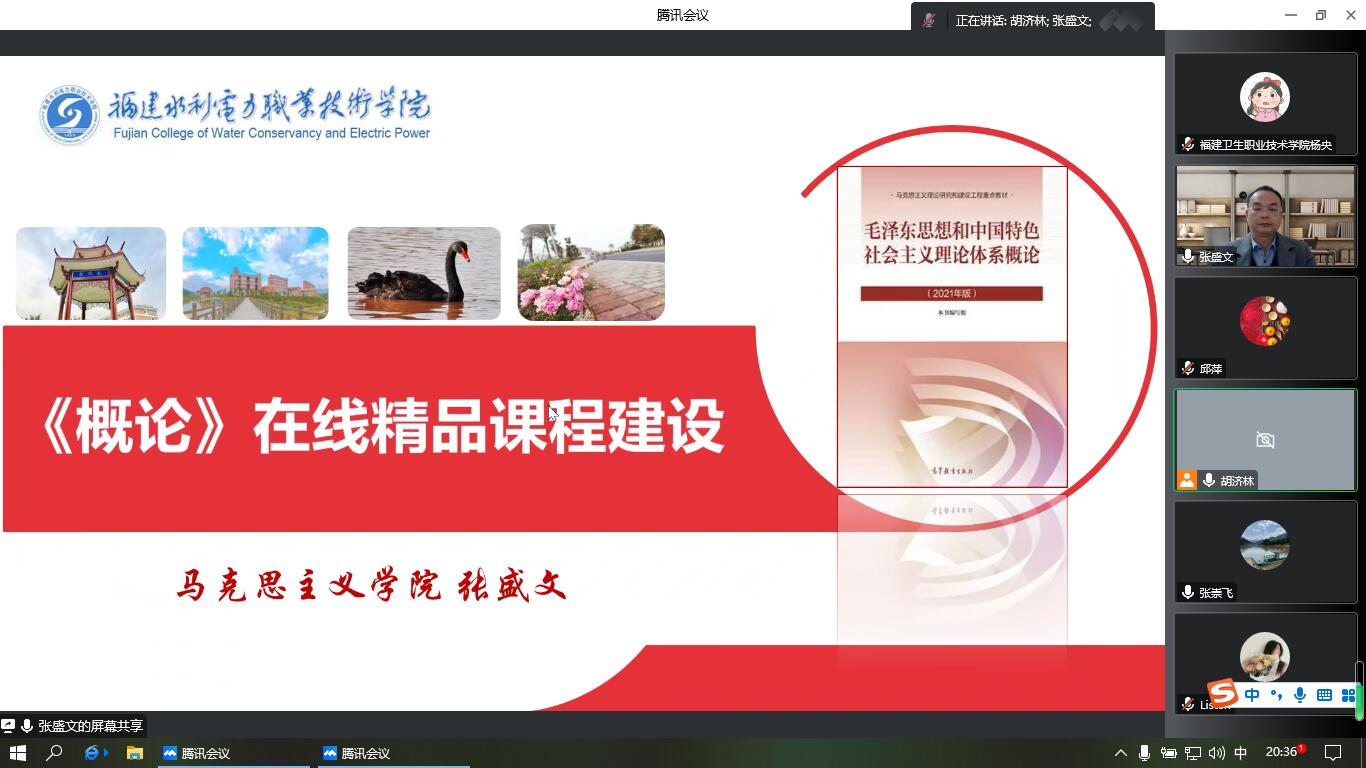 為推進(jìn)我?!睹珴蓶|思想和中國(guó)特色社會(huì)主義理論體系概論》精品在線(xiàn)開(kāi)放課程建設(shè),2022年12月18日傍晚,馬克思主義學(xué)院習(xí)近平新時(shí)代中國(guó)特色社會(huì)主義思想概論教研室通過(guò)騰訊會(huì)議,組織開(kāi)展精品在線(xiàn)開(kāi)放課程建設(shè)研討會(huì)。本次研討會(huì)特邀福建水利電力職業(yè)技術(shù)學(xué)院馬克思主義學(xué)院院長(zhǎng)張盛文教授為大家做經(jīng)驗(yàn)分享與課程建設(shè)指導(dǎo)。校教師教學(xué)培訓(xùn)師、概論教研室主任胡濟(jì)林主持會(huì)議,課程組全體教師參加會(huì)議。