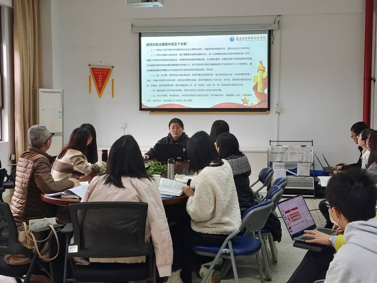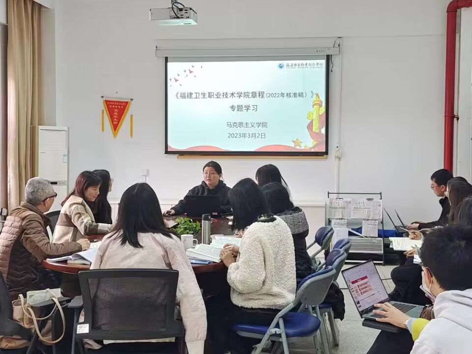 為增強(qiáng)馬克思主義學(xué)院教師對(duì)學(xué)校章程重要性及具體內(nèi)容的認(rèn)識(shí),進(jìn)一步明確教師的權(quán)利和義務(wù),推進(jìn)我校依法治校工作的順利開展,2023年3月2日,馬克思主義學(xué)院組織全體教職工認(rèn)真學(xué)習(xí)《福建衛(wèi)生職業(yè)技術(shù)學(xué)院章程(2022年核準(zhǔn)稿)》(以下簡稱《章程》)專題學(xué)習(xí)會(huì)。