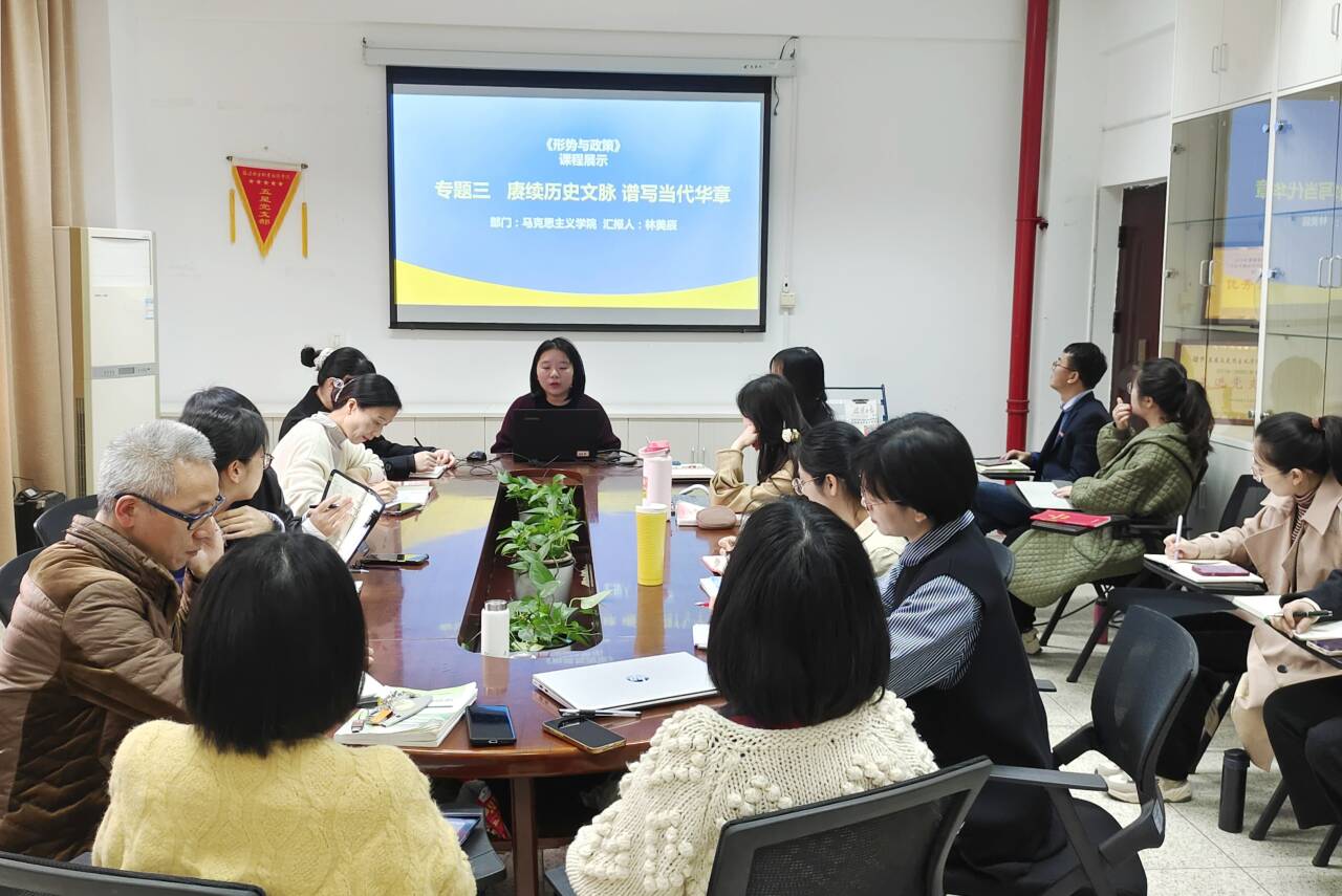 為深入學(xué)習(xí)貫徹習(xí)近平總書記在學(xué)校思想政治理論課教師座談會(huì)上的重要講話精神,特別是“大思政課”重要指示精神,切實(shí)提高思想政治理論課集體備課水平,提升教師教學(xué)質(zhì)量,2023年12月14日,馬克思主義學(xué)院在行政樓107開(kāi)展首屆思想政治理論課集體備課示范展示活動(dòng),活動(dòng)由馬克思主義學(xué)院副院長(zhǎng)來(lái)朋珍主持,馬克思主義學(xué)院全體教師參加。