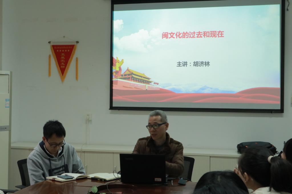 為深入學(xué)習(xí)貫徹習(xí)近平文化思想,讓同學(xué)們更深入理解福建悠久的歷史、五彩斑斕的閩文化,培育愛國情懷,堅定“四個自信”,2024年1月25日,胡濟(jì)林副教授在行政樓107室為馬克思主義學(xué)院“閩文化探源”社會實踐隊舉行《閩文化的過去和現(xiàn)在》專題報告。