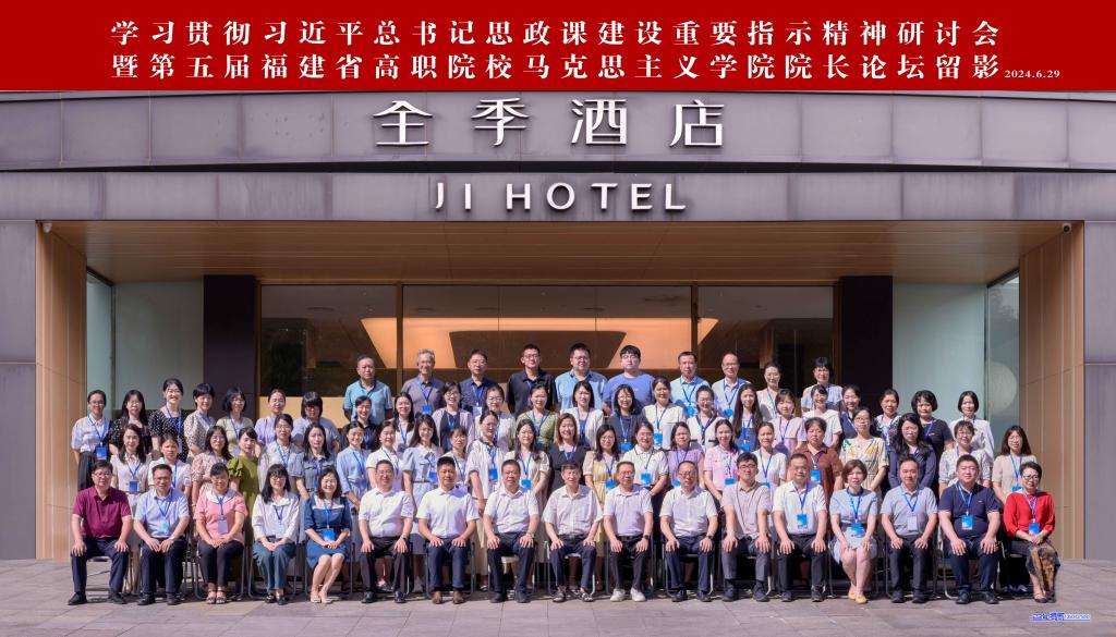2024年6月29日,學(xué)習(xí)貫徹習(xí)近平總書記思政課建設(shè)重要指示精神研討會(huì)暨第五屆福建省高職高專院校馬克思主義學(xué)院院長論壇在福州召開,我校馬克思主義學(xué)院院長熊美蘭、思想道德與法治教研室主任顏冰鳳、形勢與政策教研室主任鄭冰與來自全省27所高職院校的馬院院長、思政課骨干教師80余名代表共同參加了會(huì)議。