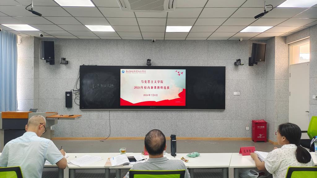 2024年7月6日,馬克思主義學院在篤行樓智慧教室開展2024年校內兼課教師選拔活動。活動邀請了學校質量管理辦公室主任郭禮堅副教授、質量管理辦公室副主任王珊珊副教授和校督導胡濟林副教授3位專家擔任評委,來自全校各學院、部門的34名教師報名參加。