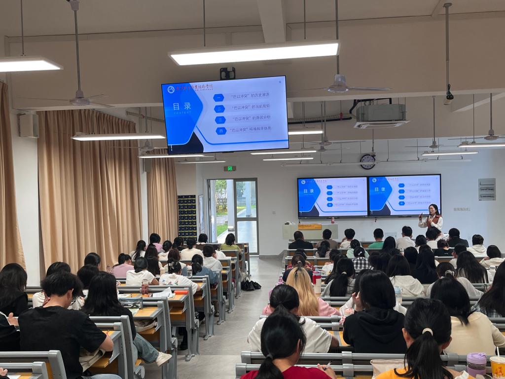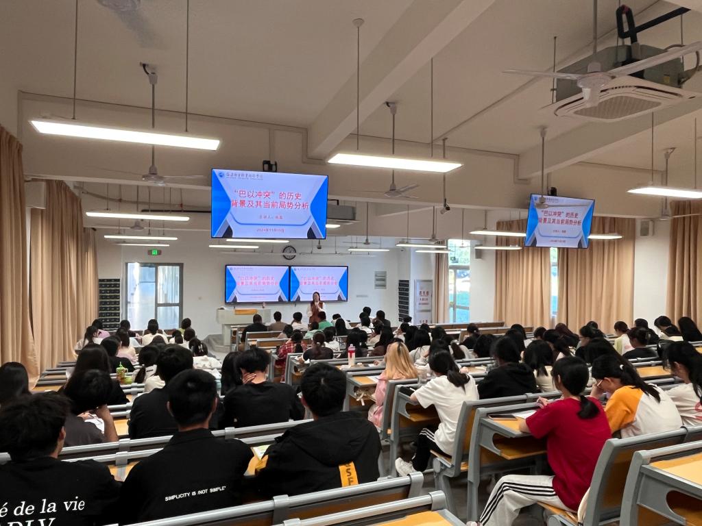 當前國際的安全形勢仍然是以和平為主旋律,局部動蕩并存,其中在局部戰(zhàn)爭中,新一輪的“巴以沖突”已經(jīng)進入第二個年頭。為了引導(dǎo)學生正確認識當前國際安全形勢,特別是從局部的動蕩現(xiàn)實中深刻感悟到我國提倡大國協(xié)商合作,構(gòu)建人類命運共同體外交政策和理念的實質(zhì)與時代意義。2024年11月15日,楊盈老師在醫(yī)學院醫(yī)基三階梯教室,為師生代表作題為《“巴以沖突”的歷史背景及其當前局勢分析》的專題講座。