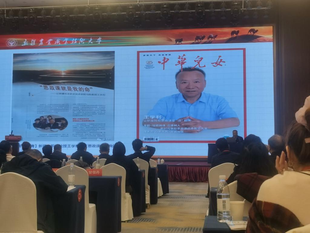 教育部教材局副局長劉宏杰,教育部社科司副司長宋凌云出席會議并講話。會上,新疆農(nóng)業(yè)職業(yè)技術(shù)大學(xué)馬克思主義學(xué)院院長、全國教書育人楷模王學(xué)利作題為“深入學(xué)習(xí)習(xí)近平同志《論教育》的重要論述,發(fā)揮思政引領(lǐng)力推動思政課內(nèi)涵式發(fā)展”的學(xué)術(shù)報告,詳細(xì)介紹了其帶領(lǐng)團隊創(chuàng)新的“案例導(dǎo)引,問題核心,三元融匯,五維協(xié)同”高職思政課問題式專題化教學(xué)模式的探索歷程、理論依據(jù)、基本內(nèi)涵和實驗成效。