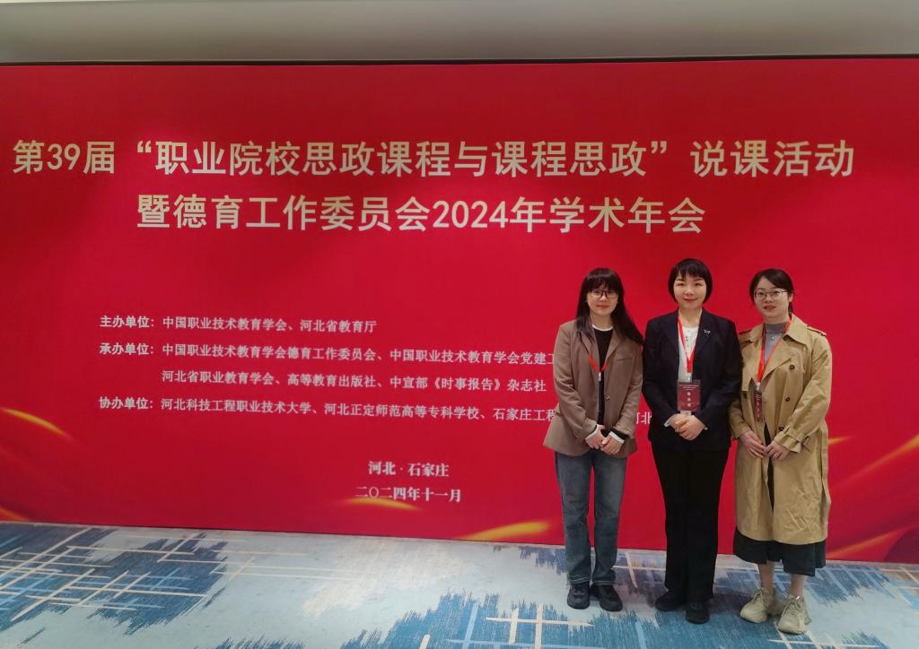近日,職業(yè)院校思政課程與課程思政說課研討會暨德育工作委員會2024年學(xué)術(shù)年會在石家莊舉辦,中國職業(yè)技術(shù)教育學(xué)會德育工作委員會會員單位代表,全國職業(yè)院校的校級領(lǐng)導(dǎo)、馬院院長、思政課教師以及相關(guān)領(lǐng)域的專家等共計230余人參加本次活動。我校黨委副書記李美華、馬克思主義學(xué)院院長熊美蘭、思政課教師吳薇參加會議。