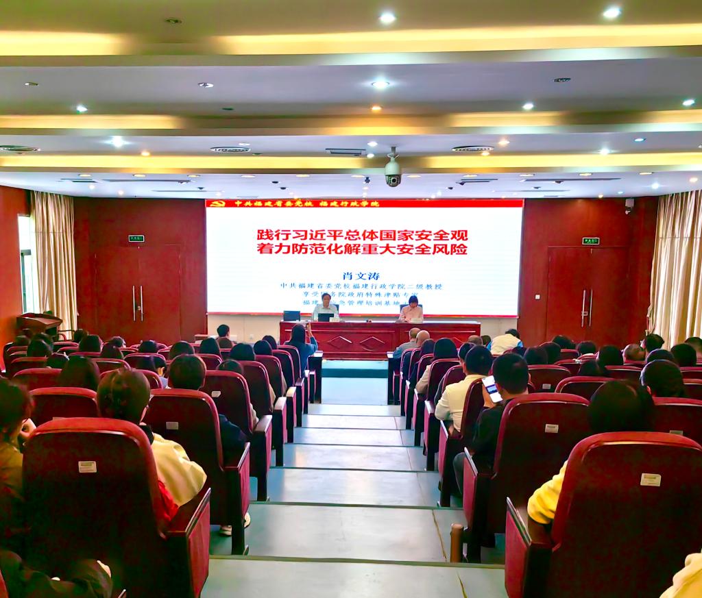 為深入學(xué)習(xí)黨的二十屆三中全會精神,引導(dǎo)我校師生認真學(xué)習(xí)貫徹總體國家安全觀,增強國家安全意識,筑牢維護國家安全的鋼鐵長城,11月21日,我校特邀國務(wù)院政府特殊津貼專家、福建省應(yīng)急管理培訓(xùn)基地主任、中共福建省委黨校福建行政學(xué)院肖文濤教授,作題為《踐行總體國家安全觀 著力防范化解重大安全風(fēng)險》的專題講座。校領(lǐng)導(dǎo)、管理干部、思政課教師和學(xué)生代表參加。講座由校黨委副書記李美華主持。