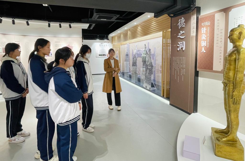 活動中,我校陳芷馨老師帶領吳秀倩老師一行參觀了中醫(yī)藥文化館,陳芷馨就我校中醫(yī)藥文化、健康養(yǎng)生理念及其蘊含的傳統(tǒng)哲學智慧等情況展開了詳細的介紹,吳秀倩一行一致表示對中醫(yī)藥文化有了更深入的了解。