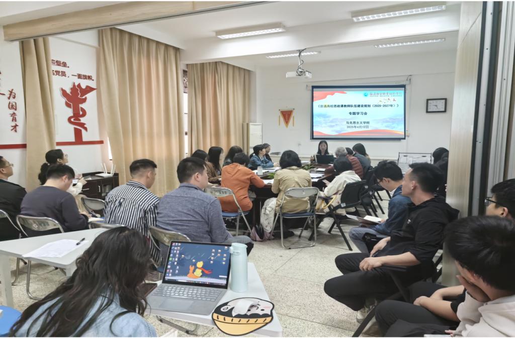2025年4月10日,為深入貫徹落實中央教育工作領導小組秘書組印發(fā)的《普通高校思政課教師隊伍建設規(guī)劃(2025-2027年)》(以下簡稱)文件精神,馬克思主義學院召開專題學習會,部署未來三年重點工作。會議由馬院副院長來朋珍主持,全體專兼職思政課教師參會。