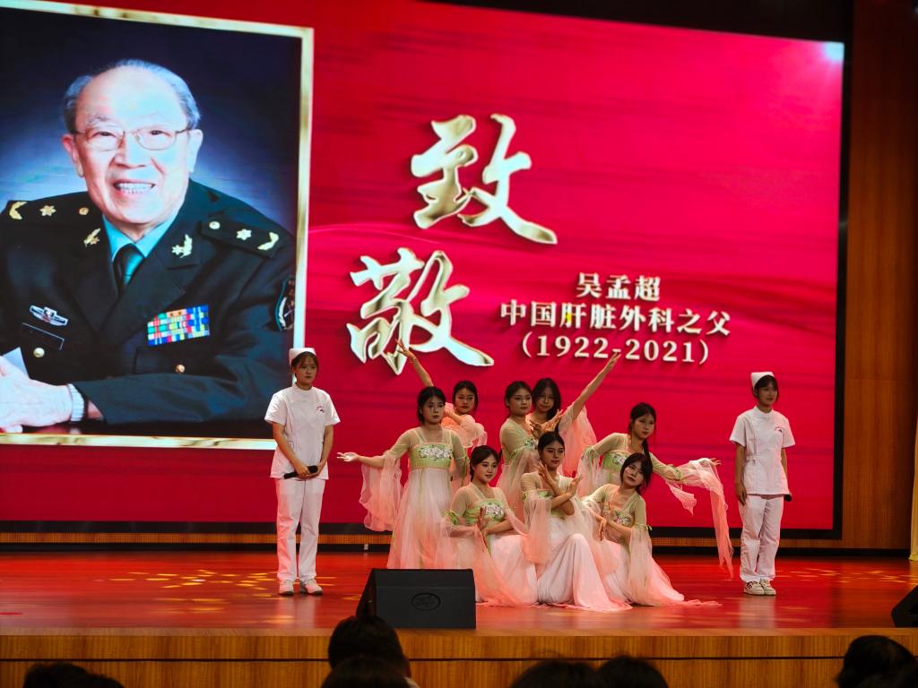 活動現(xiàn)場,主辦方以“紅醫(yī)精神”宣講為抓手,追憶傅連暲、江一真、林巧稚、吳孟超、慕容慎行等“紅醫(yī)”風(fēng)范。在吳孟超院士逝世四周年的特殊日子,通過宣傳片展示、情景朗誦等系列活動深切緬懷吳孟超院士。我校學(xué)生代表現(xiàn)場表演《如您所愿》歌伴舞,將朗誦、歌曲、舞蹈等相融合,追憶吳老生平,表達崇高敬意,展現(xiàn)青春擔(dān)當(dāng)。