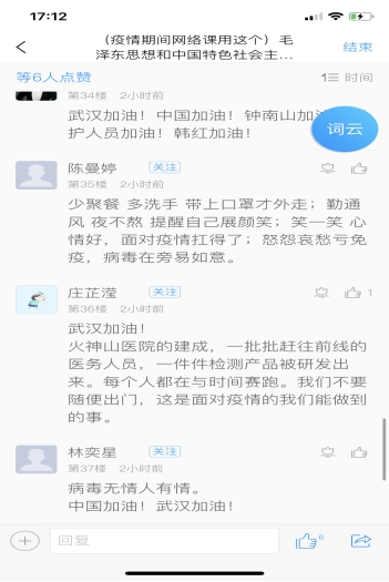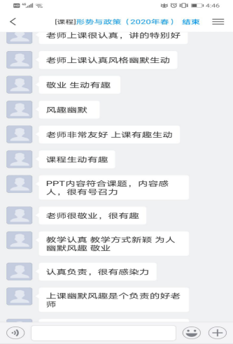 網(wǎng)絡(luò)思政課既有文字,有圖片,也有互動,還有專家視頻,收到較好的教學(xué)效果,學(xué)生反饋到:喜歡網(wǎng)上教學(xué)、課程生動有趣、老師及時(shí)在線解答,并對老師們認(rèn)真教學(xué)表示敬意。
