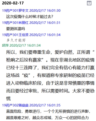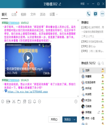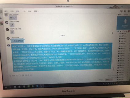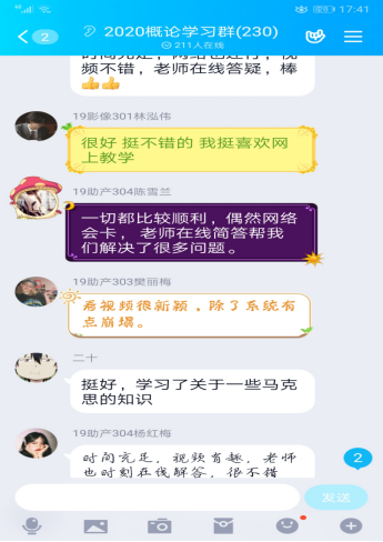 馬院建立了開學(xué)前思政課任課教師與學(xué)生班級群的線上溝通機(jī)制,教師參與班級群討論,授課過程中適時(shí)進(jìn)行在線指導(dǎo)和答疑,引導(dǎo)學(xué)生理性對待疫情發(fā)展,擁護(hù)黨中央的防疫政策,鼓勵(lì)學(xué)生言論中的正能量,發(fā)現(xiàn)學(xué)生不良的思想或心理苗頭,舒緩一些學(xué)生負(fù)面的情緒,營造一個(gè)良好的思想氛圍。