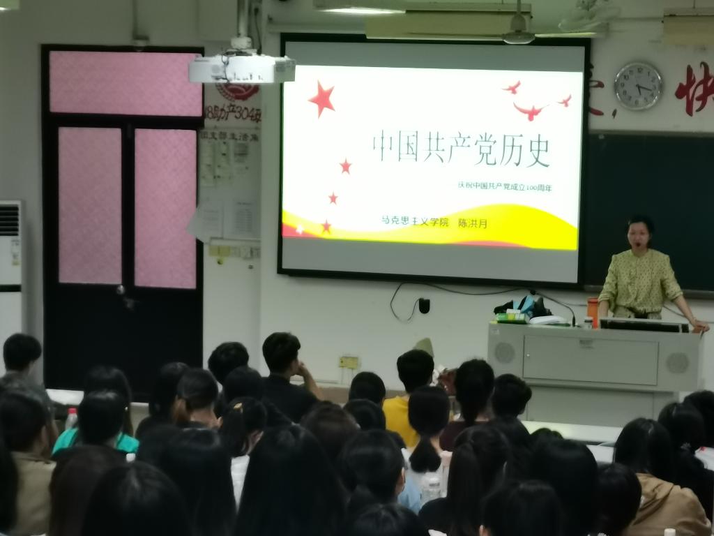 2021年5月7日下午,陳洪月老師在教學(xué)樓210為20級(jí)中醫(yī)康復(fù)301班和中醫(yī)學(xué)301.302班舉行“學(xué)習(xí)中國共產(chǎn)黨歷史專題”宣講。宣講中,陳洪月首先從“開天辟地——中國共產(chǎn)黨的成立”開始介紹,接著從“土地革命戰(zhàn)爭(zhēng)”、“中華民族的血肉長(zhǎng)城——抗日戰(zhàn)爭(zhēng)”、“爭(zhēng)取和平民主的斗爭(zhēng)——解放戰(zhàn)爭(zhēng)”、“新中國的社會(huì)主義革命與建設(shè)”等四個(gè)方面全面展開講述中國共產(chǎn)黨黨史。陳洪月通過詳盡的案例,用抑揚(yáng)頓挫的聲調(diào),激情再現(xiàn)中國共產(chǎn)黨的輝煌歷史。