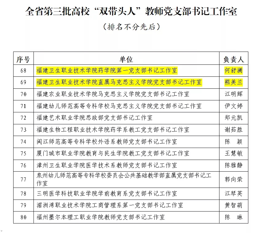 近日,省委教育工委公布了第三批高?!半p帶頭人”教師黨支部書記工作室培育建設(shè)名單,我校藥學(xué)院第一黨支部和直屬馬克思主義學(xué)院黨支部兩個(gè)工作室成功入選。這是繼我校6個(gè)黨組織入選全省黨建工作標(biāo)桿院系、樣板支部培育創(chuàng)建單位后,持續(xù)推進(jìn)新時(shí)代高校黨建示范創(chuàng)建和質(zhì)量創(chuàng)優(yōu)工作取得的新成效。