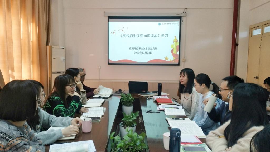 為切實增強我校師生國家安全保密意識,維護國家安全和利益,2021年11月11日,直屬馬克思主義學(xué)院黨支部召開中心組保密知識專題學(xué)習(xí)(擴大)會議,組織支部全體黨員教師學(xué)習(xí)《高校師生保密知識讀本》,會議由直屬馬克思主義學(xué)院黨支部書記熊美蘭主持。