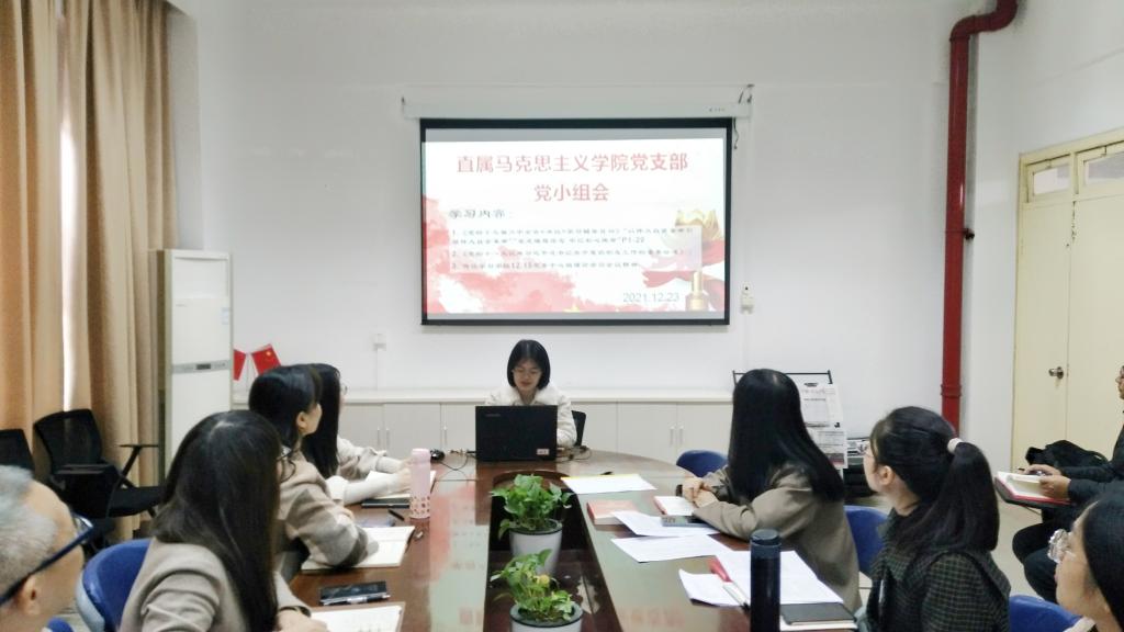 2021年12月23日上午,直屬馬克思主義學(xué)院黨支部第一黨小組在會議室107開展理論學(xué)習(xí)活動。本次活動由羅蕓同志主持,第一黨小組全體成員參加。