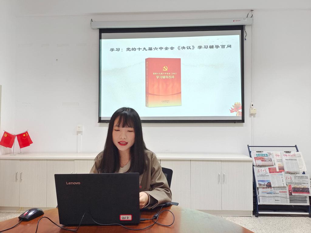 張晨琳分享了學(xué)習(xí)黨的十九屆六中全會精神的感悟。她指出:作為黨員教師,我們要深入學(xué)習(xí)貫徹黨的十九屆六中全會精神,積極響應(yīng)黨中央號召,大力弘揚(yáng)和踐行偉大建黨精神,為辦好人民滿意的、有溫度的教育積極貢獻(xiàn)自己的力量。