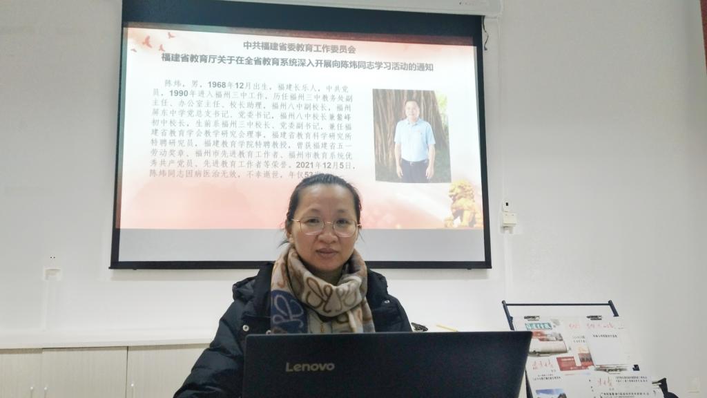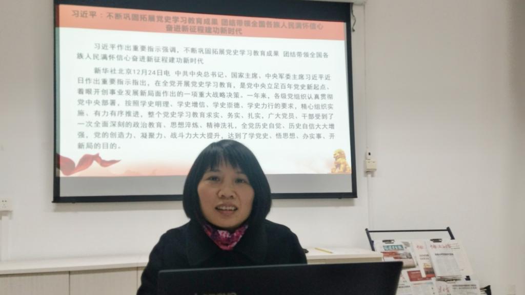 隨后,黨支部開展了交流研討活動(dòng)。由丁愛芝老師分享題為“以史為鑒、開創(chuàng)未來——學(xué)習(xí)《習(xí)近平:不斷鞏固拓展黨史學(xué)習(xí)教育成果團(tuán)結(jié)帶領(lǐng)全國(guó)各族人民滿懷信心奮進(jìn)新征程建功新時(shí)代》”的學(xué)習(xí)心得。她談到,我們要總結(jié)好、鞏固好、拓展好黨史學(xué)習(xí)教育成果,用黨的奮斗歷程和偉大成就鼓舞斗志、明確方向,用黨的光榮傳統(tǒng)和優(yōu)良作風(fēng)堅(jiān)定信念、凝聚力量,用黨的實(shí)踐創(chuàng)造和歷史經(jīng)驗(yàn)啟迪智慧、砥礪品格,在新征程上更加堅(jiān)定、更加自覺地牢記初心使命、開創(chuàng)美好未來,贏得更加偉大的勝利和榮光。接著,陳洪月老師分享題為“盡職盡責(zé) 甘于奉獻(xiàn)——開展向陳煒同志先進(jìn)事跡專題學(xué)習(xí)會(huì)”的心得體會(huì)。她談到,我們要向陳煒同志學(xué)習(xí),學(xué)習(xí)他對(duì)黨忠誠(chéng)、信念堅(jiān)定的政治品質(zhì);還要學(xué)習(xí)他甘當(dāng)蠟炬、甘為人梯的高尚情操,堅(jiān)持“功成不必在我、功成必定有我”的宏闊胸懷,腳踏實(shí)地,做實(shí)事、做好事、解難事;學(xué)習(xí)他淡泊名利、克己奉公的優(yōu)良作風(fēng)。