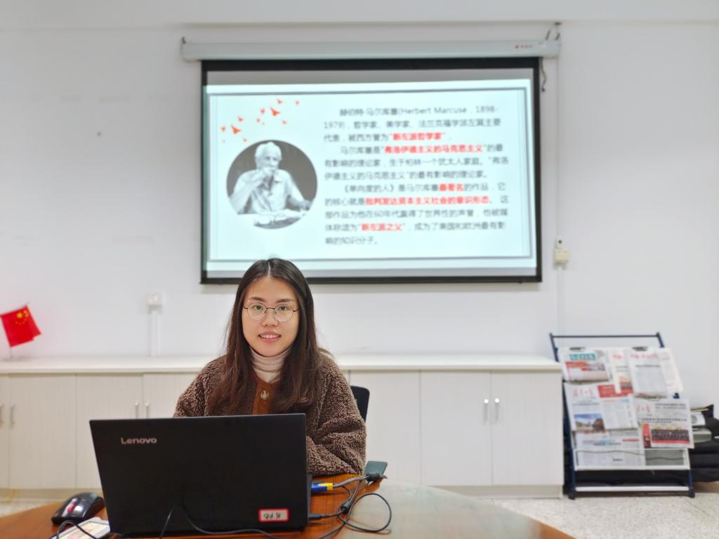 2022年1月6日,直屬馬克思主義學院黨支部第二黨小組在會議室107開展經(jīng)典研學分享活動。此次活動由黨支部委員羅蕓同志主持,朱麗燊老師主講,研學內(nèi)容為《單向度的人》。