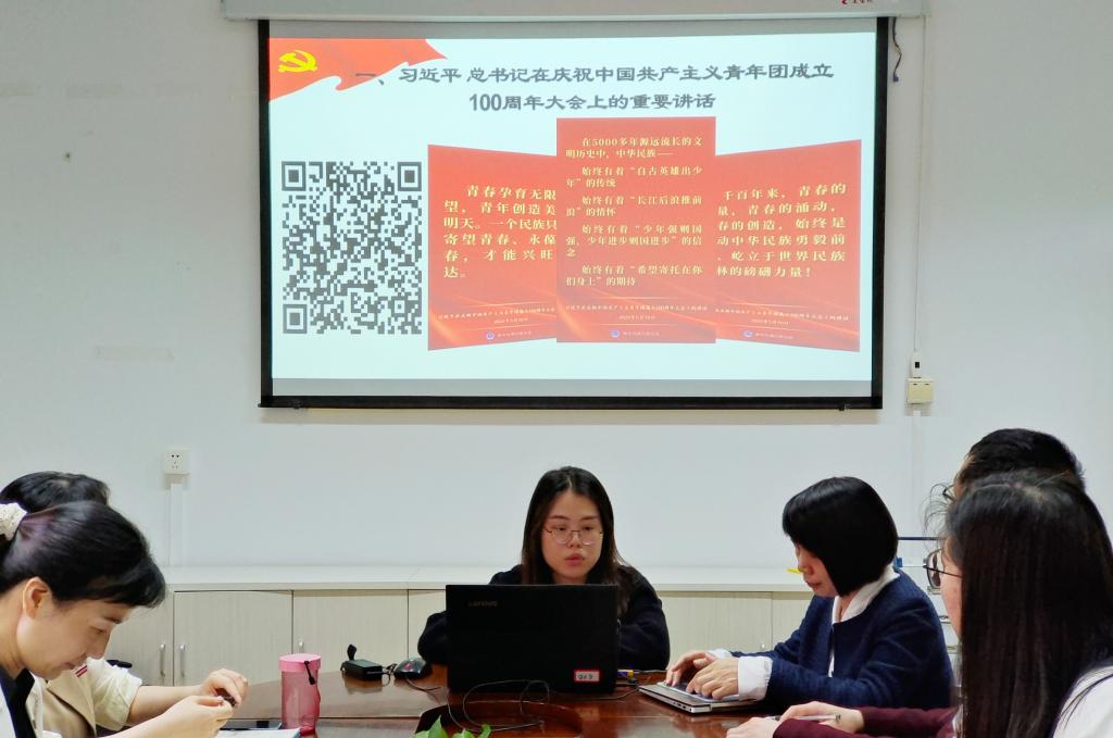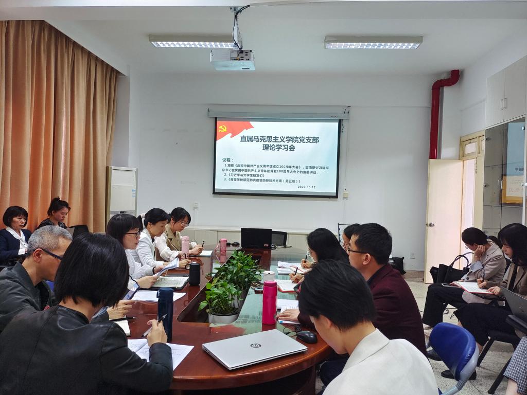 5月12日上午,直屬馬克思主義學(xué)院黨支部組織全體黨員教師收看慶祝中國共產(chǎn)主義青年團成立100周年大會,認真聆聽習(xí)近平總書記重要講話,共慶中國共產(chǎn)主義青年團成立100周年?;顒佑牲h支部書記熊美蘭主持,全體黨員參加會議。