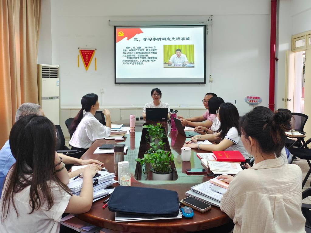 接下來,由黨小組代表吳薇同志分享李翀同志的先進(jìn)事跡。她談到,通過學(xué)習(xí)李翀同志的先進(jìn)事跡,令人無比感動(dòng)和震撼。作為一名黨員,要向李翀看齊,進(jìn)一步筑牢對(duì)黨忠誠(chéng)的政治品格,堅(jiān)守共產(chǎn)黨人的精神高地,立足崗位、刻苦鉆研、精益求精、迎難而上、認(rèn)真履職,以實(shí)實(shí)在在的工作成績(jī)踐行初心使命。
