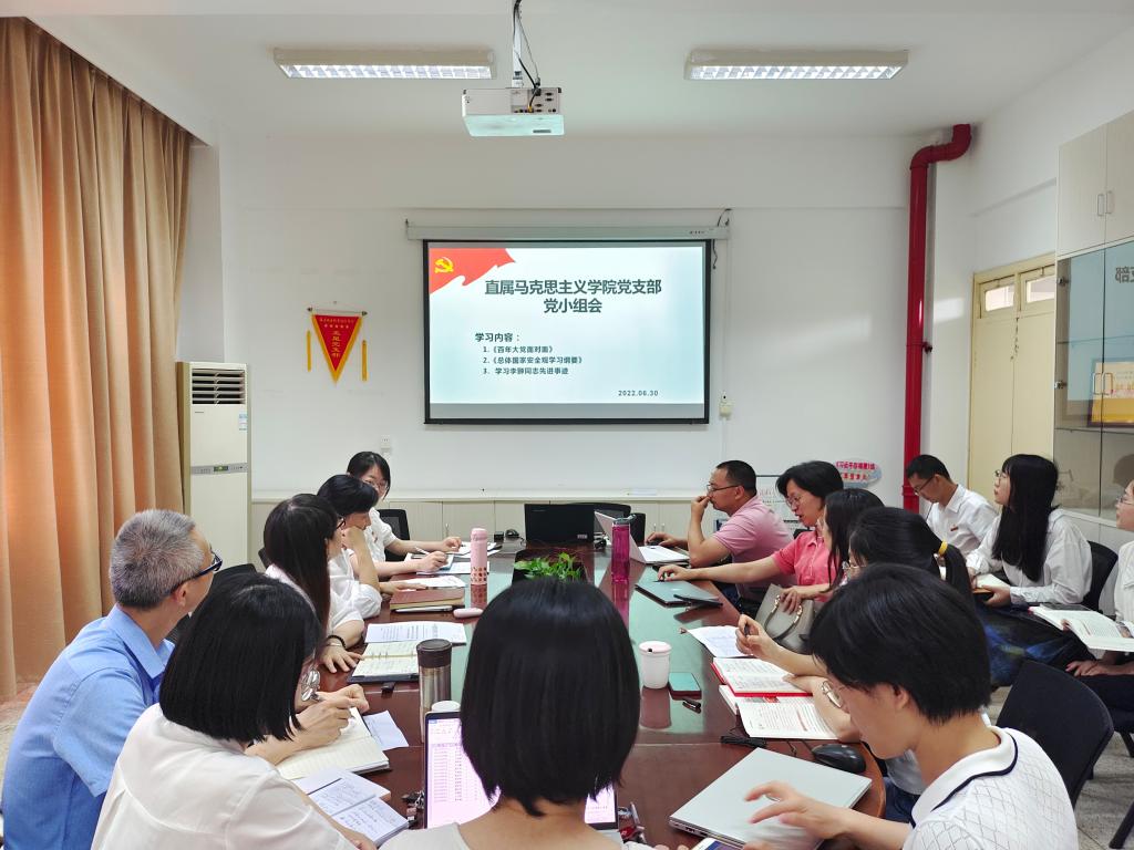 2022年6月30日,直屬馬克思主義學(xué)院黨支部第二黨小組在會(huì)議室107進(jìn)行理論學(xué)習(xí),主要學(xué)習(xí)《百年大黨面對(duì)面》《總體國(guó)家安全觀學(xué)習(xí)綱要》、李翀同志先進(jìn)事跡,學(xué)習(xí)活動(dòng)由黨小組來朋珍同志主持。
