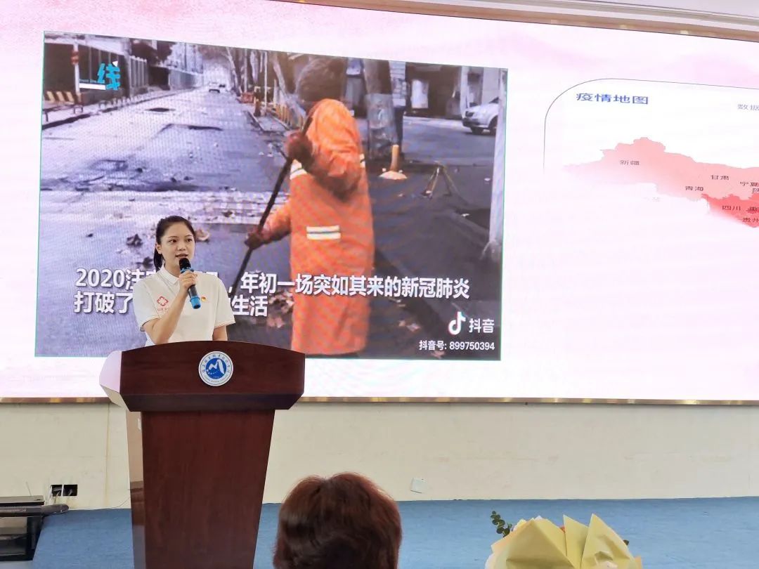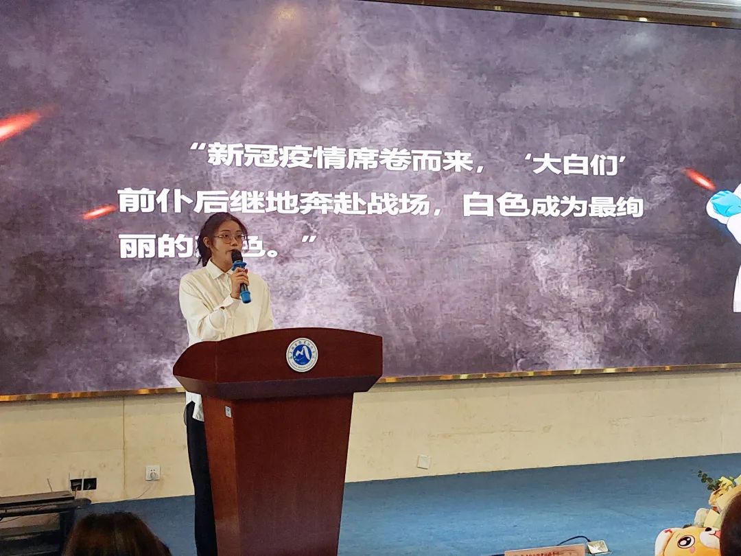 在校生代表許欣穎、張惠英分別以“ 微光成炬,我成了你們”“我的流調(diào)日記”為題,分享她們在后方戰(zhàn)“疫”一線保駕護(hù)航的故事。流調(diào)工作如同一場沒有硝煙的戰(zhàn)爭,所有參加抗“疫”的志愿者們,精銳出戰(zhàn)、沖鋒在前,不辭辛勞、不懼風(fēng)險(xiǎn),迎朝露、伴月光,全情投入,承擔(dān)起看似瑣碎而又不可缺的大量工作,用自己的行動(dòng)為這場戰(zhàn)“疫”默默奉獻(xiàn),用一道道微光匯聚成希望的火炬,照亮了人民對美好生活的向往。身為醫(yī)學(xué)生,她們通過此次“實(shí)戰(zhàn)”,錘煉了自己的本領(lǐng),并深刻認(rèn)識自己醫(yī)學(xué)生的使命責(zé)任。