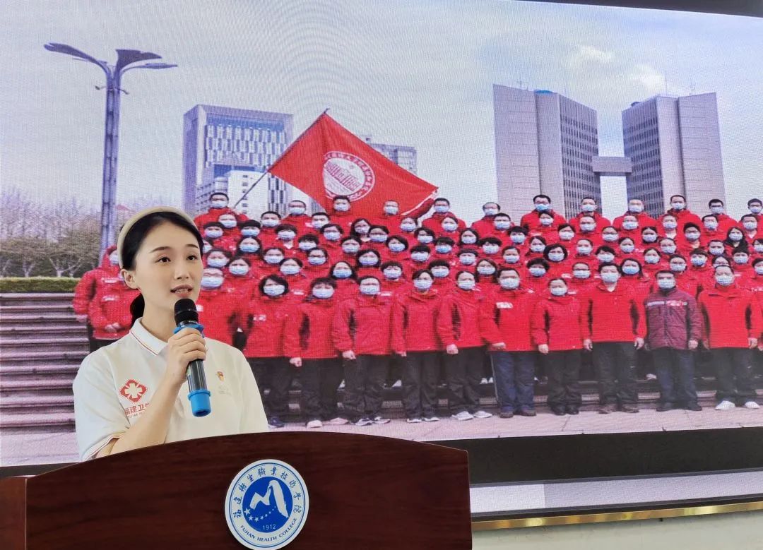 現(xiàn)就職龍巖市第二醫(yī)院的詹仕鑫校友通過云端的方式講述了他作為首批援鄂醫(yī)療隊(duì)一員,進(jìn)駐武漢金銀潭醫(yī)院的故事。他目睹了武漢確診人數(shù)在短時(shí)間內(nèi)突破2萬;見證了火神山醫(yī)院在10天內(nèi)拔地而起;親歷了所有黨員面對黨旗宣誓,“隨時(shí)準(zhǔn)備為黨和人民犧牲一切”“把最危險(xiǎn)的工作留給黨員”的莊嚴(yán)時(shí)刻。他隨即下定決心加入中國共產(chǎn)黨,向黨組織遞交了入黨申請書。2022年,他又再次出征援滬,主動(dòng)申請?jiān)谧钇D難、感染風(fēng)險(xiǎn)最高的脫間通道崗位,進(jìn)行對所有出艙隊(duì)員的監(jiān)督把控,做方艙里的“最后一道防線”。“生逢盛世,何其有幸”,他鼓勵(lì)在場青年醫(yī)學(xué)生立足崗位從先輩手中接過歷史的接力棒,繼續(xù)奔跑,以實(shí)際行動(dòng)迎接黨的二十大。