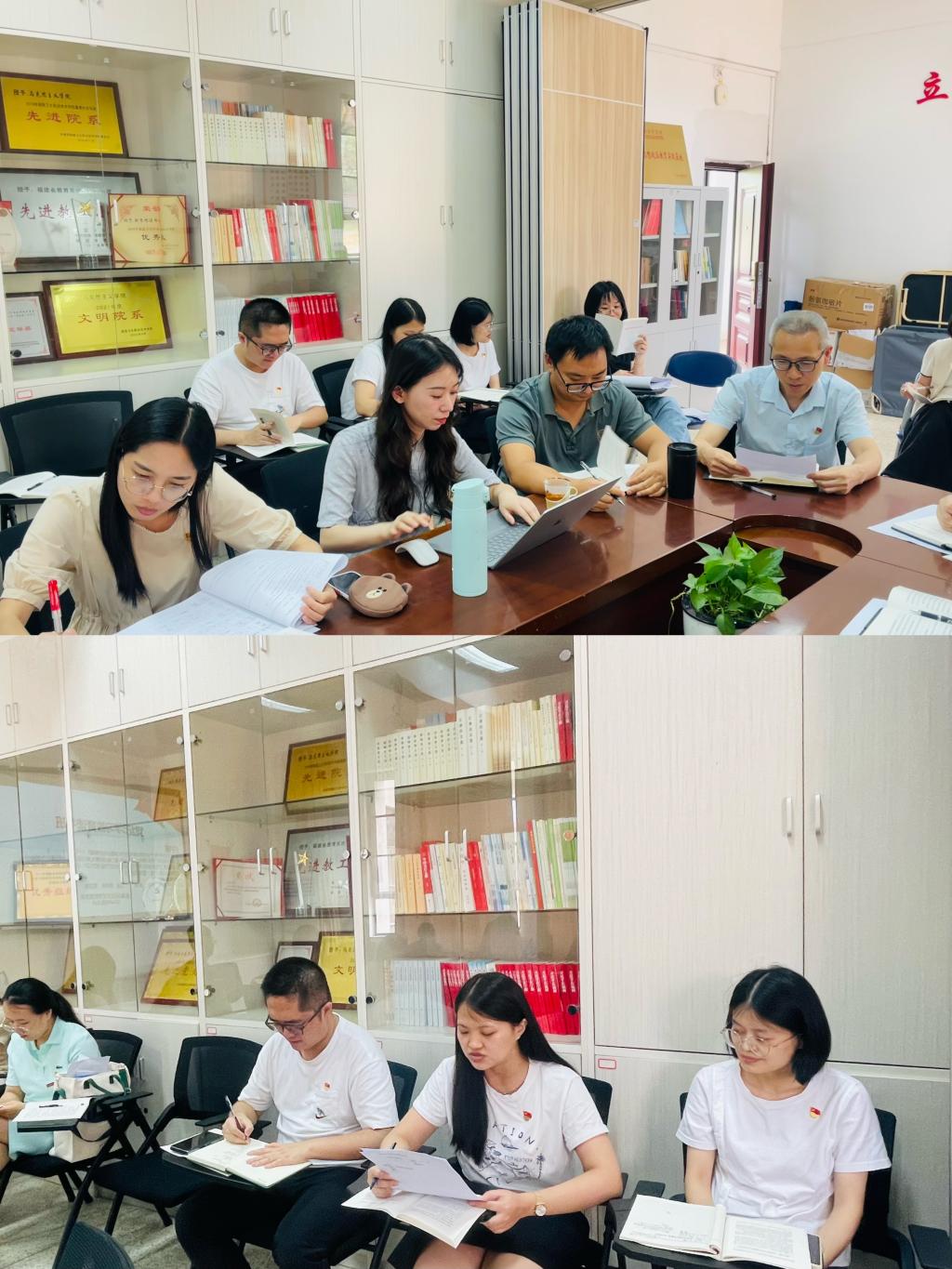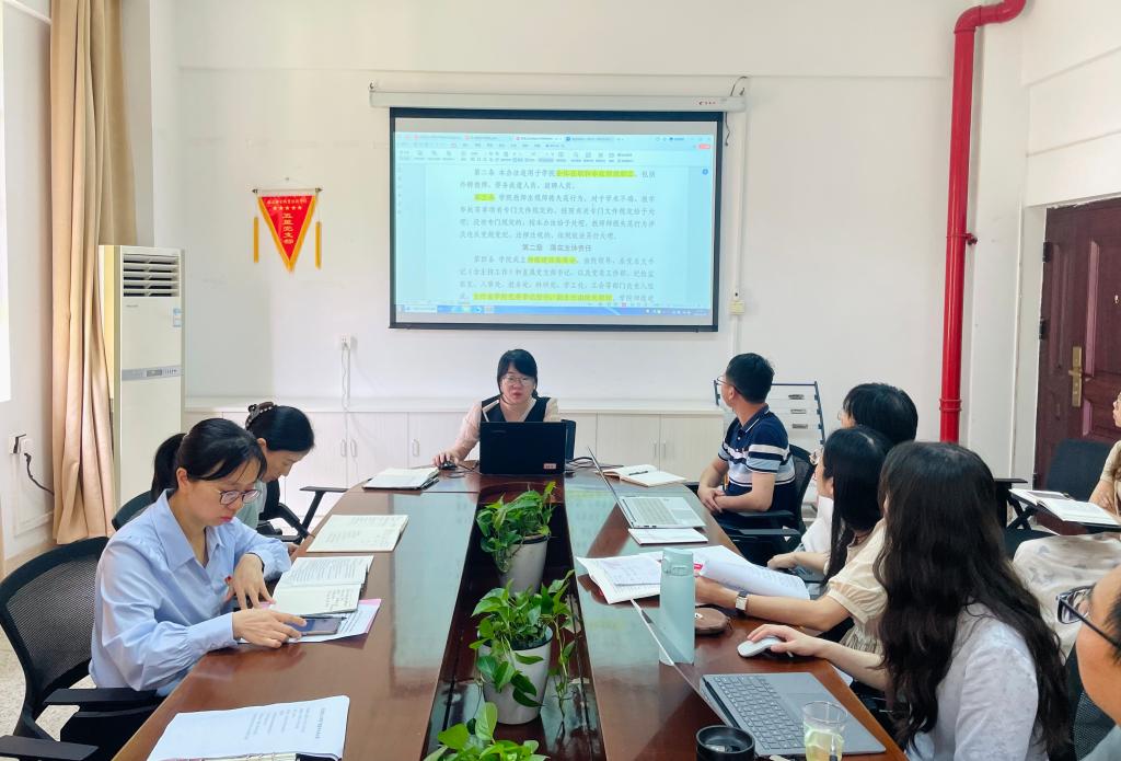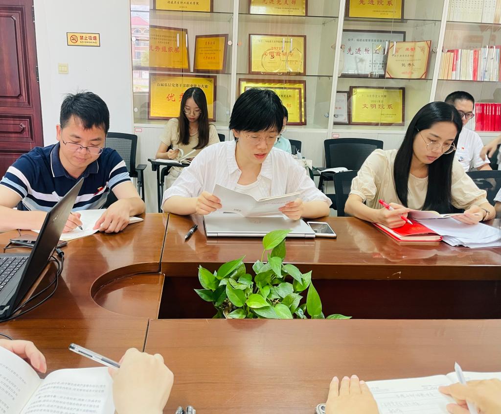 集體學習后,胡濟林同志、鄒亞彤同志進行心得交流。胡濟林堅持作為黨員,要嚴格執(zhí)行黨章,堅持黨員服務(wù)群眾,教師服務(wù)學生,以創(chuàng)新的意識、創(chuàng)新的精神、創(chuàng)新的思路去工作,做一名廉潔自律、愛崗敬業(yè)的好老師。鄒亞彤結(jié)合自身,提出要聚焦職責定位,不斷自我反省,正視短板補齊弱項,克服育人工作中出現(xiàn)的消極懈怠的情緒、形式主義的作風、不求有功但求無過的態(tài)度,守好政治關(guān)、師德關(guān)、業(yè)務(wù)關(guān),堅持育人為本,用心教育、用愛教育,做學生成長路上的擺渡人。