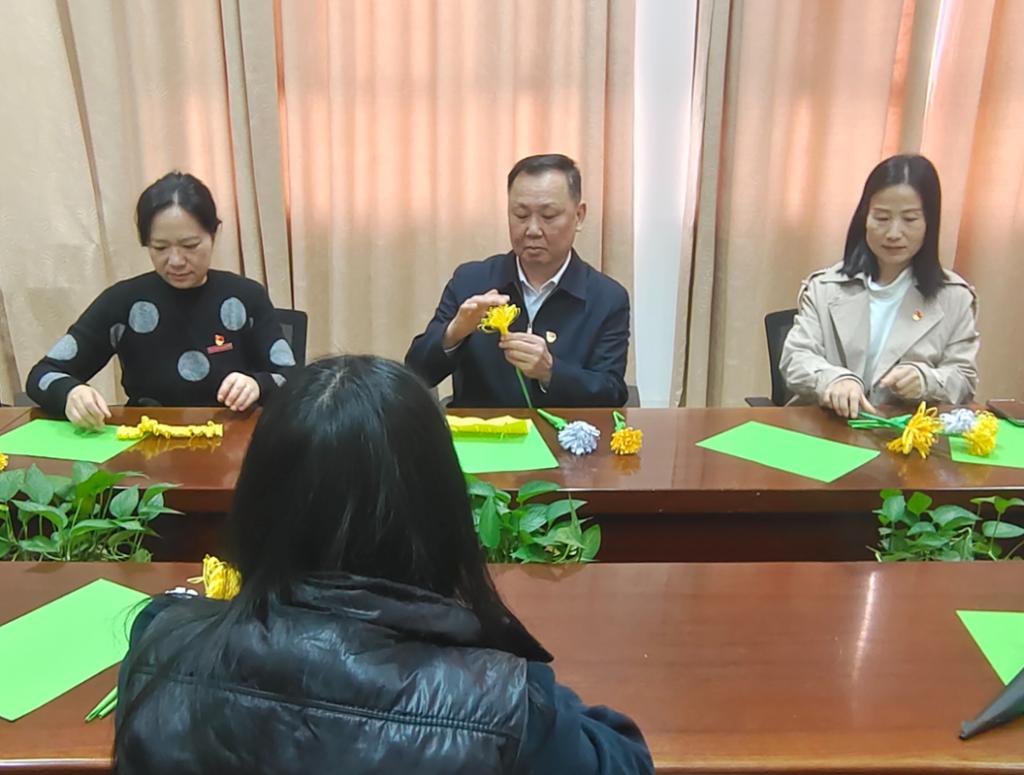 蒼松翠柏掩映下,110座烈士墓靜默矗立,斑駁的碑文銘刻著1949年福州戰(zhàn)役的壯烈史詩。活動伊始,大家圍坐成圓,將素白卡紙裁作八瓣雛形。隨著對角翻折、塑形固瓣、細捻花蕊等工序有序推進,百余朵手工紙菊漸次綻放,“革命理想高于天”的信念教育具象化為可觸可感的儀式載體。