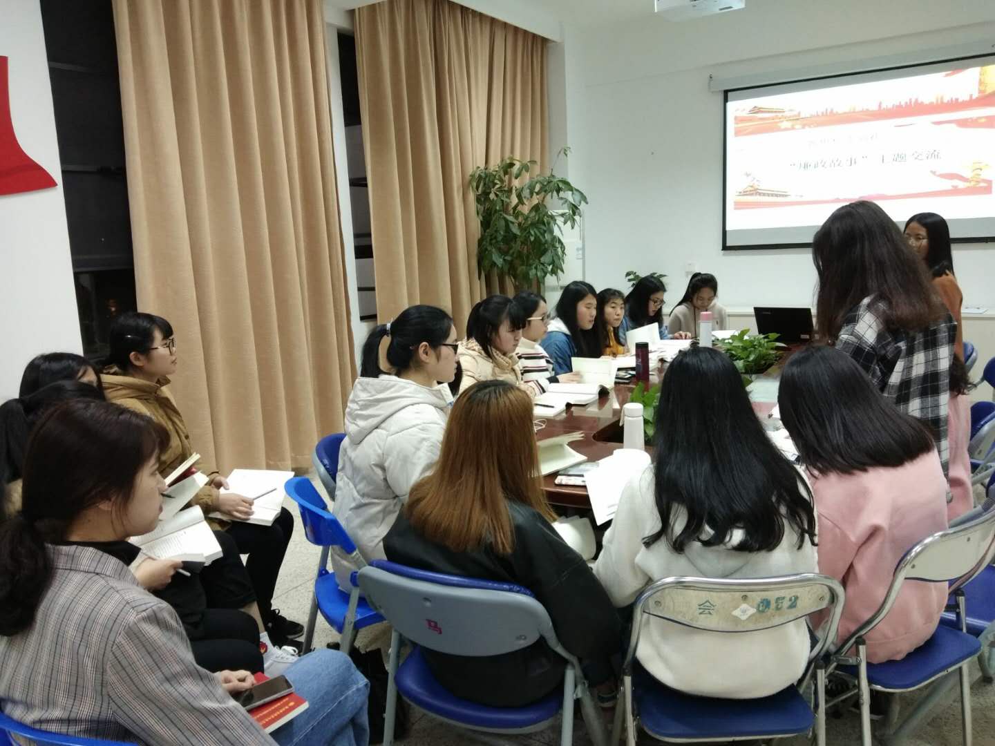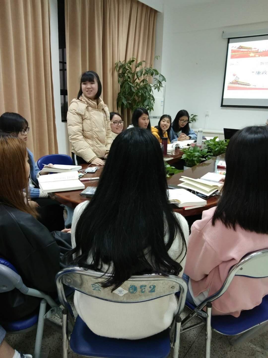 在活動前,由負責人致開幕詞,接著引入主題,活動正式開始,此次活動分兩個環(huán)節(jié),第一個環(huán)節(jié),新成員自我介紹,新成員們用簡短的語言介紹自己,讓我們對她們有了初步的了解,拉近了彼此間的距離,第二個環(huán)節(jié)是分享環(huán)節(jié),由老成員先為新成員做示范,熟悉一下內(nèi)部的交流方式,首先進行分享的是張婉玲同學,她為我們分享的是《廉不言貧,勤不道苦》,她用優(yōu)美的語言向我們講述了這個故事,讓我們享受了聽覺上的盛宴,并發(fā)表了自己的感想,接著是每位新成員依次進行分享交流,最讓人印象深刻的是張彩霞同學發(fā)表的《四知拒金》這個故事,講述了東漢人楊震如何用四知來拒絕王密的故事,習近平總書記運用這個例子,旨在說明覺悟?qū)σ粋€人的重要性。老師的點評也引發(fā)大家的思考,提問在未來的工作中遇到這種情況該怎么辦?大家發(fā)言,最終老師的指出我們尚在自知的境界,還未達到真正的慎獨。