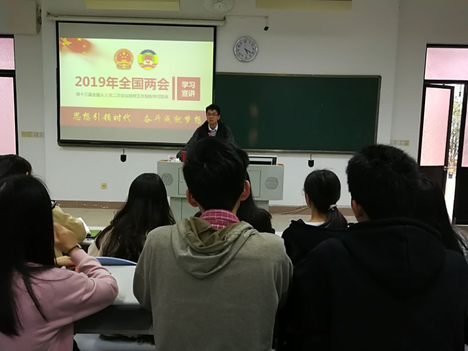 為深入貫徹2019年全國兩會精神,把全國兩會精神及時傳達到校園、傳達給廣大學(xué)生,營造廣大學(xué)生學(xué)習(xí)、踐行全國兩會精神的濃厚氛圍。3月15日,江洪老師在教學(xué)樓210開展2019年全國兩會精神學(xué)習(xí)宣講。習(xí)近平新時代中國特色社會主義思想讀書社“致遠隊”成員參加了學(xué)習(xí)。